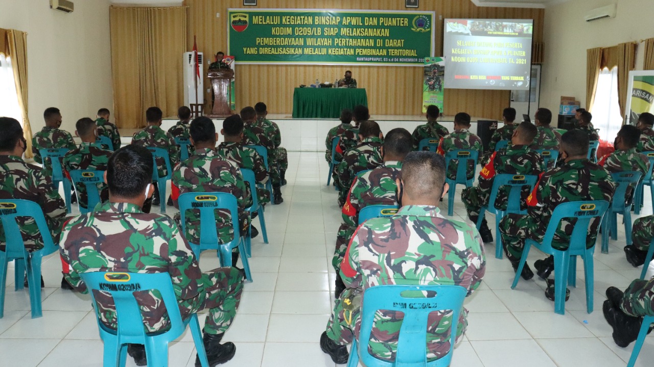 Pasi Puanter Mayor Inf Sukaraito mengatakan, kehadirannya di Kodim 0209/LB ini adalah untuk mengadakan Wasgiat Binsiap Apwil dan Puanter serta sebagai wadah memberi informasi terbaru terkait bidang teritorial.