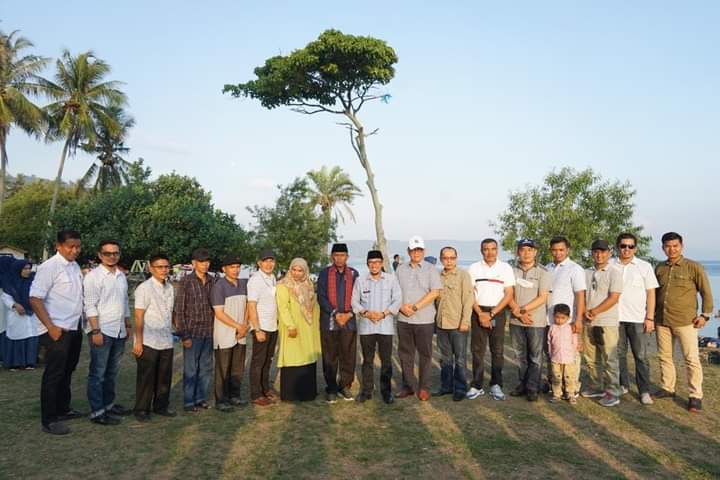 | Foto bersama : Bupati Eka Putra dengan Camat se-Tanah Datar, di objek wisata Tanjung Mutiara, Sabtu (14/5) |