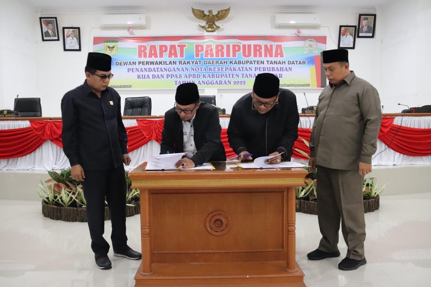 | Bupati Eka Putra bersama pimpinan DPRD Tanah Datar menandatangani nota kesepakatan KUA-PPAS APBD Perubahan tahun 2022 |